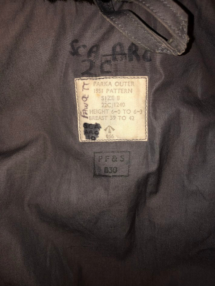 A RARE AND SOUGHT AFTER LARGE PROBABLY PRE 1970 COLD WEATHER PARKA IN GOOD CONDITION, SHOWS LIGHT USE AND IN THE SLEAVE A SMALL PART OF THE STITCHING HAS COME APART SEE IMAGES,THE LABEL IS STILL PRESENT.